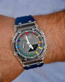 این ساعت دارای بند رابر و صد در صد ضد آب و دارای نمایشگر دیجیتالی و عقربه ای است و قابلیت ذخیره و نمایش ساعت 28 پایتخت مختلف دنبا را دارد.