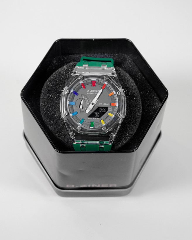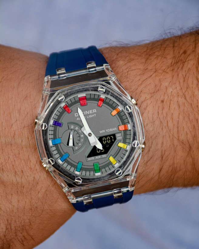 ساعتی مچی دیزاینر از دل هنر و علم تولید شده. این ساعت برای جزییات در طراحی و دکمه های ظریف و زیبایی که در ساعتمچی های تو تعبیه کرده مشهور هست . این ساعت قابلیت نمایش ساعت انالوک و دیجیتالی را باهم دارد و مورد توجه علاقهمندان به هنر، مد و دیزاین در جهان قرار گرفته است و همین ویژگی در طراحی باعث منحصر به فرد شدن این ساعت شده.