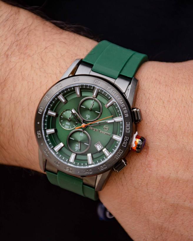موتور های کوارتز، قابلیت ضد آب بودن، تاریخ شمار، روز شمار، قابلیت دو زمانه بودن و شب نما بودن عقربه هااز ویژگی شاخص ساعت مچی های سرجیو تاچینی هستند.