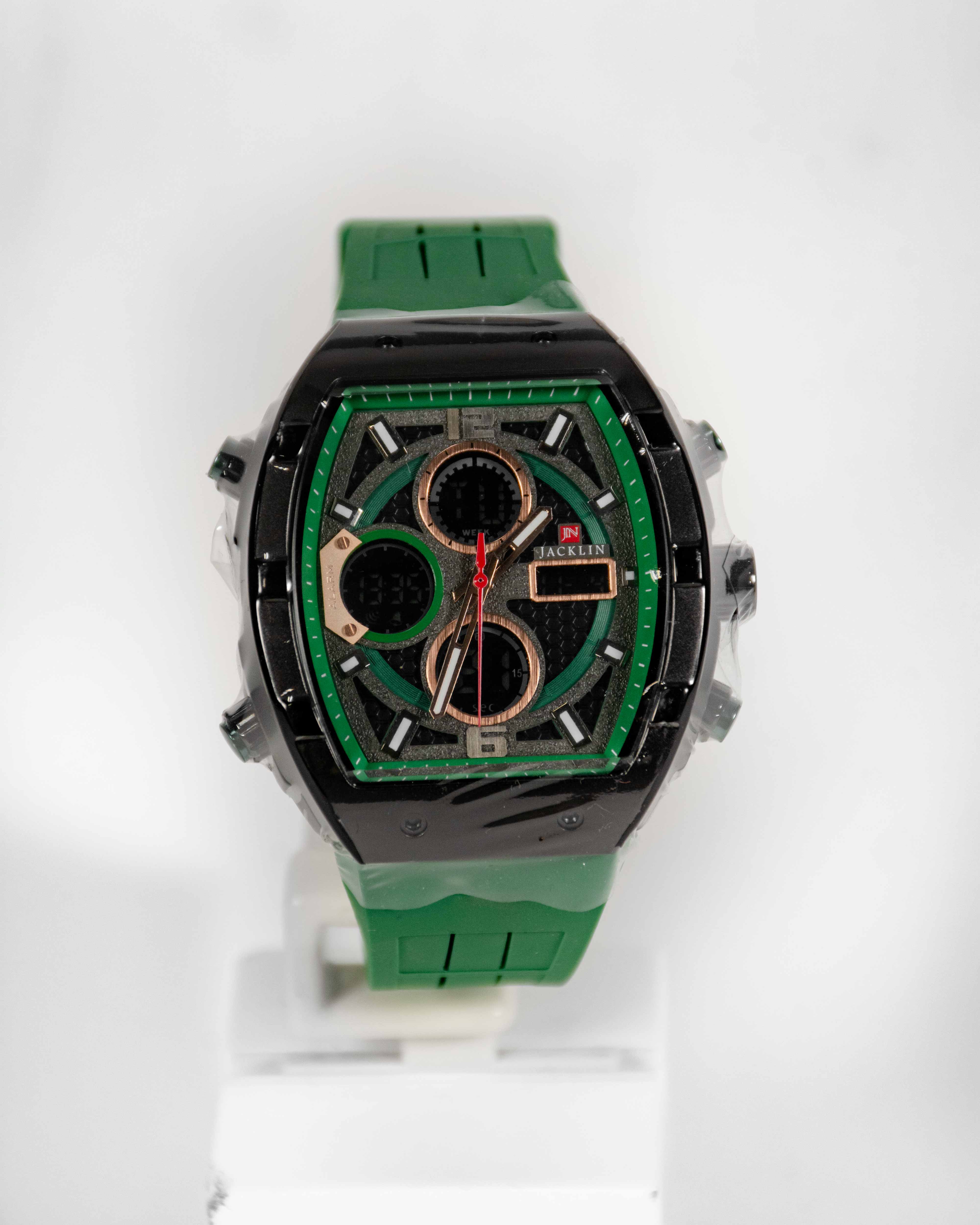 خرید ساعت مچی مردانه ای واچ مدل (190240) سه موتوره درسه رنگ سبز و نقره ای و طلایی و بند سیلیکونی
